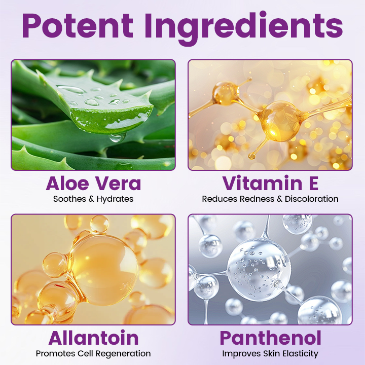 ✅ Aloe Vera – Soothes & Hydrates: Aloe Vera is widely known for its natural healing power. Rich in antioxidants and vitamins, it calms irritated skin, reduces dryness, and provides long-lasting hydration — creating the ideal environment for scar recovery.